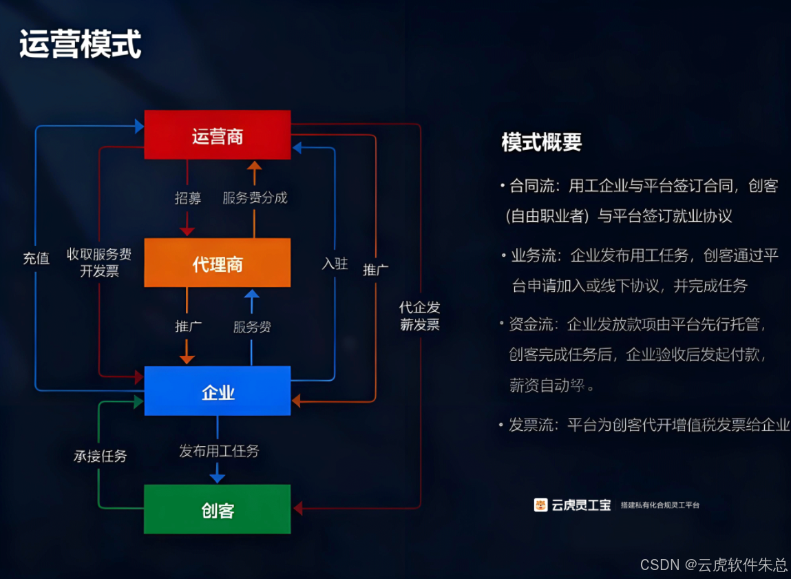 它并非简单的“招聘网站”,其核心价值在于:将传统的“劳动合同雇佣关系”,转变为基于任务的“商业合作承揽关系”,并为此关系提供任务发包、费用结算、税务优化、合规保障等一站式服务。