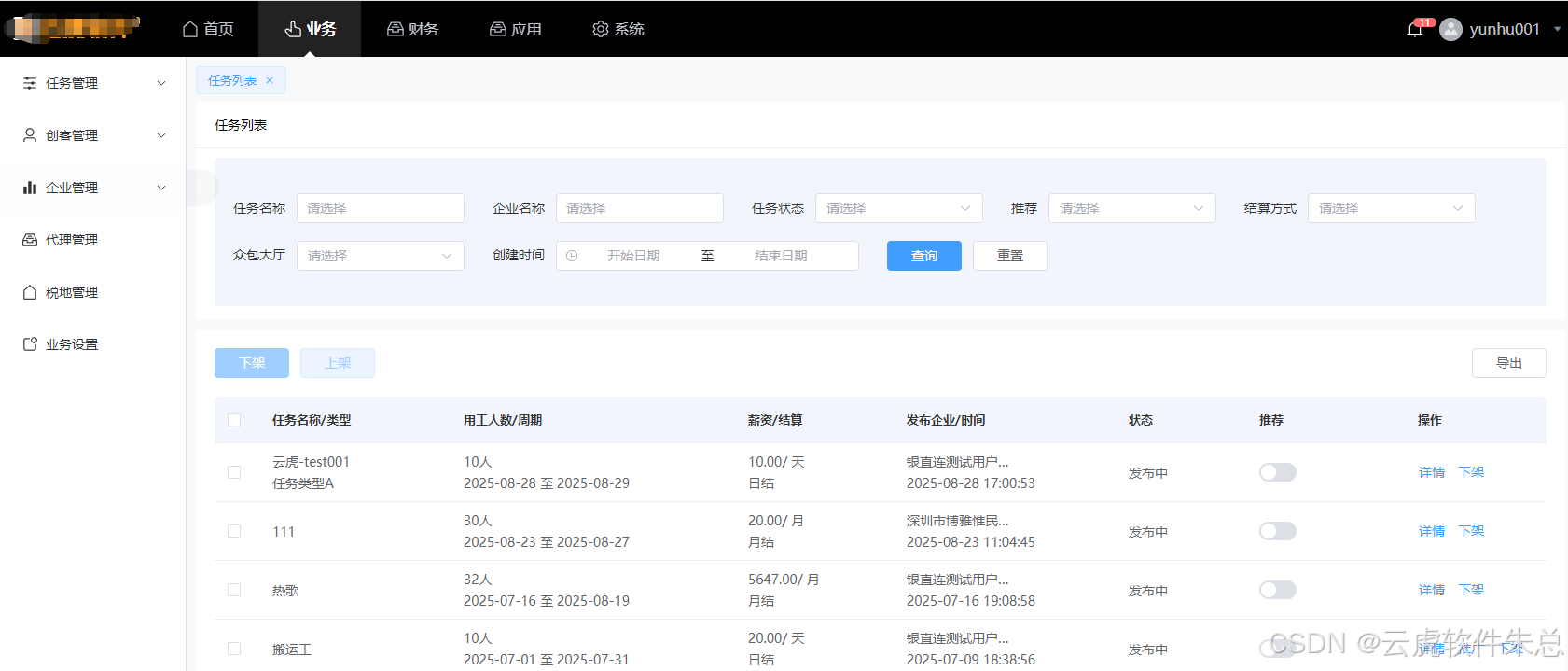JAVA微服务架构:支持百万级任务并发处理,系统稳定性达99.99%,某大型企业集团接入后,实现旗下50家子公司灵活用工统一管理。